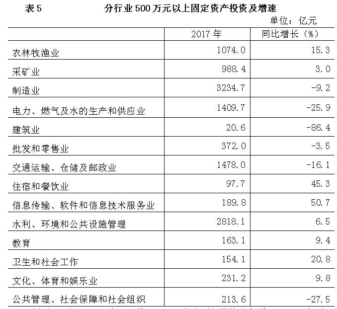 全年全社会固定资产投资比上年增长13.0%。固定资产投资(不含农户)增长13.6%。在固定资产投资(不含农户)中,分区域看,东部地区投资比上年增长12.2%,中部地区投资增长18.3%,西部地区投资增长3.4%。